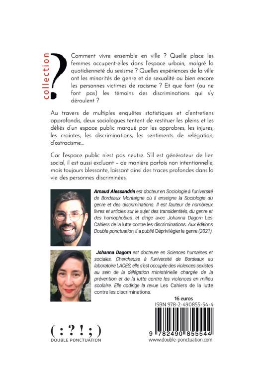 Comment vivre ensemble en ville ? Quelle place les femmes occupent-elles dans l’espace urbain, malgré la quotidienneté du sexisme ? Quelles expériences de la ville ont les minorités de genre et de sexualité ou bien encore les personnes victimes de racisme ? Et que font (ou ne font pas) les témoins des discriminations qui s’y déroulent ? Au travers de multiples enquêtes statistiques et d’entretiens approfondis, deux sociologues tentent de restituer les pleins et les déliés d’un espace public marqué par les opprobres, les injures, les craintes, les discriminations, les sentiments de relégation, d’ostracisme.... Car l’espace public n’est pas neutre. S’il génère du lien social, il est aussi excluant – de manière parfois non intentionnelle, mais toujours blessante, laissant ainsi des traces profondes dans les vies des personnes discriminées.