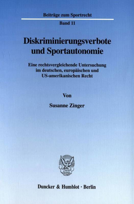 Diese Problematik wird unter dem Blickwinkel von gesetzlichen Diskriminierungsverboten bzw. der Geltung von Gleichbehandlungsgrundsätzen untersucht. Ausgangspunkt ist die auf ein US-amerikanisches Antidiskriminierungsgesetz, den Americans with Disabilities Act, gestützte Klage des Profigolfspielers Casey Martin vor einem US-Bundesgericht. Durch diese erzwang der körperlich behinderte Sportler gegenüber dem Veranstalter eine Abänderung der geltenden Wettkampfregeln und damit seine Teilnahme an den Turnieren. Neben der Frage, inwieweit zugunsten behinderter Sportler ein Eingriff in das Selbstbestimmungsrecht der Sportverbände gerechtfertigt sein kann, wird diskutiert, welche Auswirkungen die das Geschlecht betreffenden Gleichbehandlungsgrundsätze auf den Sport entfalten. Zielsetzung ist es, durch die rechtsvergleichende Betrachtung des US-amerikanischen Rechts eine Sensibilisierung im deutschen Recht in bezug auf die Problematik einer möglichen Diskriminierung im Sport zu erreichen.
