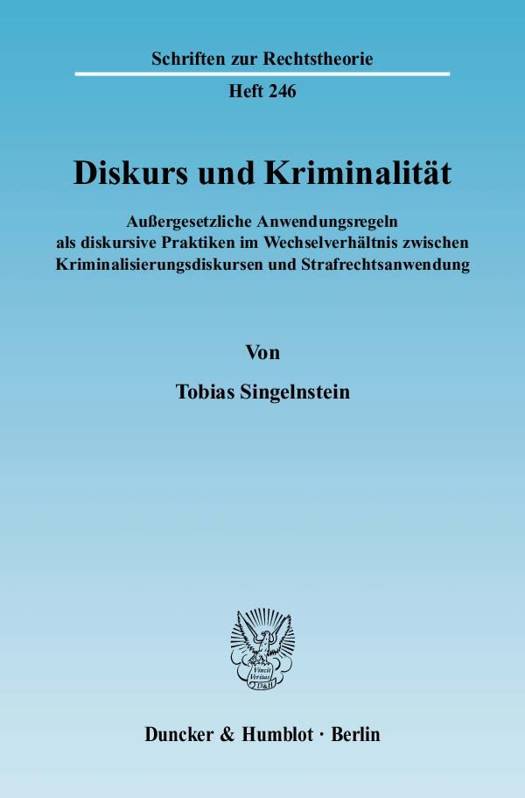 Der Autor entwickelt ein Konzept außergesetzlicher Anwendungsregeln, die die Rechtsanwendung leiten und so außerrechtliche Einflüsse in den Kriminalisierungsprozess transportieren. Diesen Ansatz verbindet er mit der sozialwissenschaftlichen Diskursanalyse im Anschluss an Foucault. Danach können gesellschaftliche Wissensbestände als interpretativer Rahmen von Kriminalisierungsprozessen verstanden werden. Mit diesem Modell analysiert Singelnstein, wie gesellschaftliche Vorstellungen über Kriminalität die Rechtsanwendung prägen und welchen Einfluss diese Praxis wiederum auf gesellschaftliche Vorstellungen hat. Er erklärt so, wie inhaltliche Grundlagen für die Zuschreibung im Kriminalisierungsprozess gebildet werden und wie sie über die herausgearbeiteten Anwendungsregeln in die Rechtsanwendung gelangen. Von diesen Befunden ausgehend widmet er sich sodann dem Aspekt der Macht, die der Rechtsanwendung im Kriminalisierungsprozess angesichts dessen innewohnt. Hierfür zieht er den Ansatz der Gouvernementalität heran. Damit legt der Autor eine in der "Recht und Gesellschaft"-Forschung zu verortende Arbeit vor, die die in den Sozialwissenschaften vieldiskutierten Konzepte der Diskursanalyse und der Gouvernementalität für die Kriminologie, die Rechtstheorie und -soziologie fruchtbar macht.