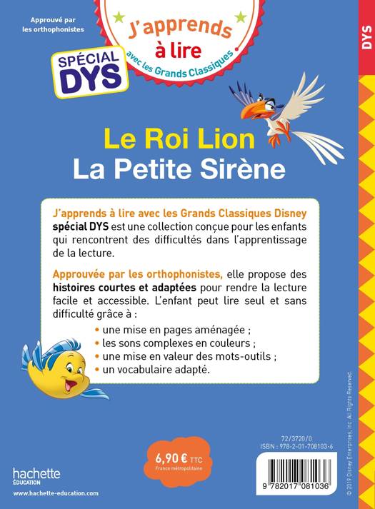 J’apprends à lire avec les Grands Classiques Disney spécial dys est une collection conçue pour les enfants qui rencontrent des difficultés dans l’apprentissage de la lecture.