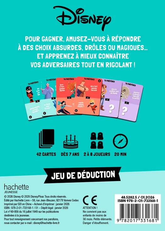 Le jeu duTu préfères ?des personnages Disney Pixar ! Un jeu et des personnages appréciés par les enfants de 6 à 10 ans. Un packaging très pratique pour ranger les cartes à la fin de la partie. Une identité visuelle qui donne envie de collectionner les boîtes.
