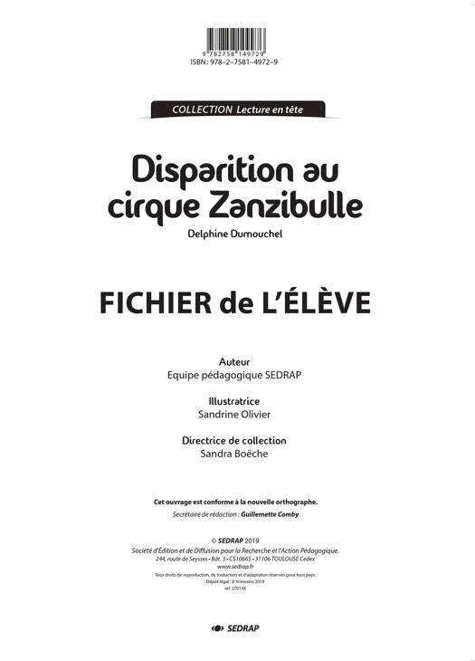 DISPARITION AU CIRQUE ZANZIBULLE - LE FICHIER
