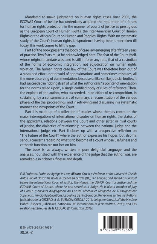 Mandated to make judgments on human rights cases since 2005, the ECOWAS Court of Justice has undeniably acquired the reputation of a forum for human rights protection. Part I of the book presents the body of case law emerging after fifteen years of practice. Part II is made up of a collection of studies whose themes centre on the major interrogations of international disputes on human rights. Part II closes up with a prospective reflexion on "The Future of the Court", where the author expresses his hopes, but also his serious concerns regarding what is to become of a court whose usefulness and cathartic function are not lost on him.