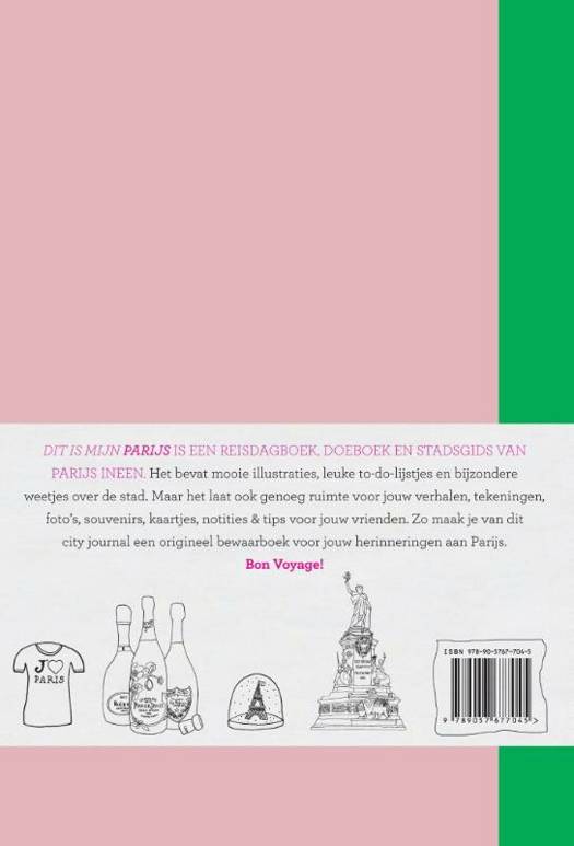 DIT IS MIJN PARIJS IS EEN REISDAGBOEK, DOEBOEK EN STADSGIDS VAN PARIJS INEEN. Het bevat mooie illustraties, leuke to-do-lijstjes en bijzondere weetjes over de stad. Maar het laat ook genoeg ruimte voor jouw verhalen, tekeningen, foto's, souvenirs, kaartjes, notities & tips voor jouw vrienden. Zo maak je van dit city journal een origineel bewaarboek voor jouw herinneringen aan Parijs. Bon Voyage!