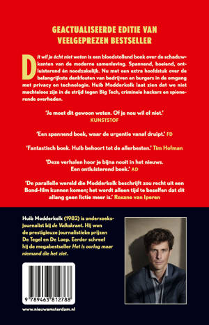 Geactualiseerde editie van een van de meest urgente bestsellers van het jaar. De parallelle wereld die Modderkolk beschrijft zou recht uit een Bond-film kunnen komen; het wordt alleen tijd te beseffen dat dit allang geen fictie meer is.' – Roxane van Iperen 'Een spannend boek, waar de urgentie vanaf druipt.' FD 'Fantastisch boek. Huib behoort tot de allerbesten.' – Tim Hofman 'Deze verhalen hoor je bijna nooit in het nieuws. Een ontluisterend boek.' AD 'Knap, deze vertelvorm, die de zeer informatieve inhoud goed behapbaar maakt.' Trouw 'Een spannend spionnenboek […]. Hij laat niet alleen zien hoe onze digitale leefomgeving aan alle kanten wordt geïnfecteerd, maar ook hoe wij zelf geïnfecteerd worden door onze digitale leefomgeving.' Het Parool 'Een must read.' Sophie Hilbrand 'Je moet dit gewoon weten. Of je nou wil of niet.' Kunststof 'Ik wil dit eigenlijk niet weten,' krijgt onderzoeksjournalist Huib Modderkolk regelmatig te horen wanneer hij vertelt over de gevaren van moderne technologie. Diezelfde houding treft hij bij bedrijven en de overheid. Als hij zelf doelwit wordt van een inlichtingenoperatie, ondervindt Modderkolk de gevolgen van die naïeve opstelling. Zijn daaropvolgende onderzoek brengt hem bij mensen die, soms met gevaar voor eigen leven, stap voor stap laten zien dat internet een magnifiek wapen is. Van Den Haag tot Sint Petersburg en van Eindhoven tot Teheran stuit hij op angstaanjagende verhalen die normaal verborgen blijven. Zo ontdekt hij waar onze meest intieme data belanden, waarom Nederland een risicovol detectiesysteem verspreidde en hoe ver China wereldwijd is doordrongen in kritieke systemen. Dit wil je écht niet weten is - net als Modderkolks alom geprezen bestseller Het is oorlog maar niemand die het ziet - een bloedstollende pageturner over de schaduwkanten van de online samenleving.