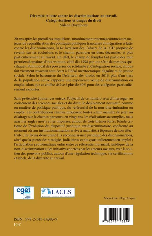 Ce nouveau numéro des Cahiers de la LCD propose de revenir sur les évolutions survenues en deux décennies dans les politiques publiques françaises d'intégration à lutte contre les discriminations, plus particulièrement au travail. Ce numéro tente d'interroger, au croisement des sciences sociales et du droit, le déploiement normatif, du référentiel de la non-discrimination en emploi.