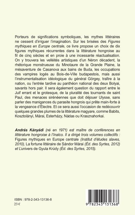 Porteurs de significations symboliques, les mythes littéraires ne cessent d'irriguer l'imagination. Ce livre propose un choix de dix figures mythiques récurrentes dans la littérature hongroise au fil de cinq siècles et en proie à une incessante réactualisation.On y trouvera les velléités artistiques d'un Néron décadent, la rhétorique monstrueuse du Minotaure de la Grande Plaine ou encore les occupations des vampires logés au Bois-de-Ville budapestois. Et ce sera aussi l'occasion de redécouvrir quelques grandes plumes de la littérature magyare, comme Babits, Kosztolányi, Márai, Esterházy, Náadas ou Krasznahorkai.