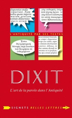 La parole vive anime les langues mortes. Cet instrument commun, central dans la vie publique, doit etre efficace entre les mains de l'homme libre et du citoyen accompli. Ainsi est nee une technique du discours: la rhetorique. Elaboree par les Grecs, adaptee par les Romains, elle a ete fondamentale dans l'education des elites. Harangues, eloges et plaidoyers, evidemment, mais aussi prieres, satires, badinages, impromptus de banquet et proclamations poetiques mettent en scene l'habilete a convaincre avec methode et a persuader par le plaisir ou le pouvoir des mots. La culture et la litterature antiques sont toutes petries d'un art de parler et d'ecouter qui est egalement devenu un art d'ecrire et de lire. A travers pres de 150 textes grecs et latins issus des traductions publiees aux Belles Lettres, Dixit propose un parcours varie, dans lequel des extraits celebres voisinent avec des pages moins connues, curieuses ou piquantes, afin d'inviter le lecteur a decouvrir les principales formes de discours pratiquees jadis et le regard aigu que les Anciens ont porte sur elles.