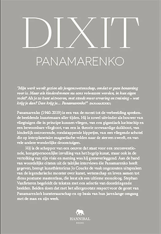 Hij is de schepper van een oeuvre dat staat voor een onconventionele, hoogstpersoonlijke invulling van het begrip kunst, maar ook in de vertolking van zijn visie en mening was hij grensverleggend. Aan de hand van woordelijke citaten uit de talrijke interviews die Panamarenko heeft gegeven, brengt kunsthistoricus Jo Coucke de vaak ongezouten uitspraken van de legendarische meester over kunst, wetenschap en leven samen tot diens postume masterclass, die leest als een ultieme monoloog. Stephan Vanfleteren begeleidt de teksten met een selectie van doordringende beelden. Beiden doen dat met het allergrootste respect voor de geest van Panamarenko’s kunstenaarschap en op basis van hun jarenlange omgang met de man en zijn werk.