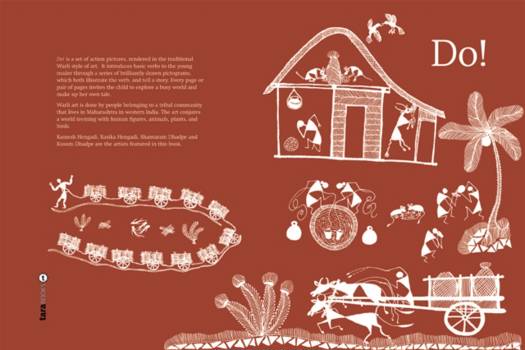 Do! is a set of action pictures, rendered in the traditional Warli style of art. It introduces basic verbs to the young reader through a series of brilliantly drawn pictograms, which both illustrate the verb, and tell a story.