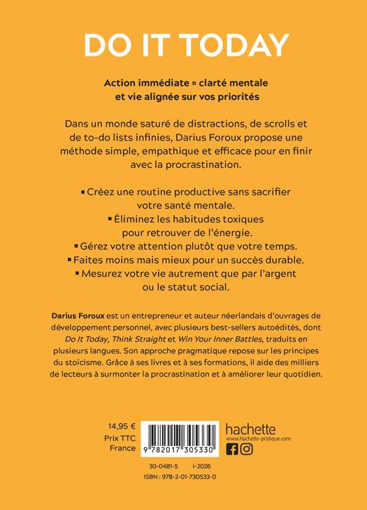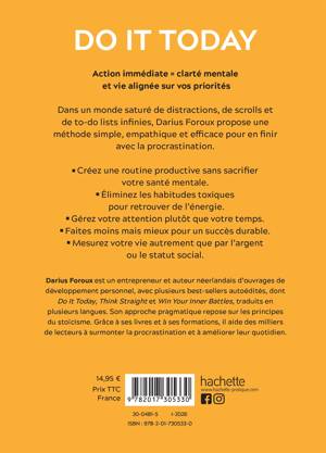 Dans un monde saturé de distractions, de scrolls et de to-do lists infinies, Darius Foroux propose une méthode simple, empathique et efficace pour en finir avec la procrastination.