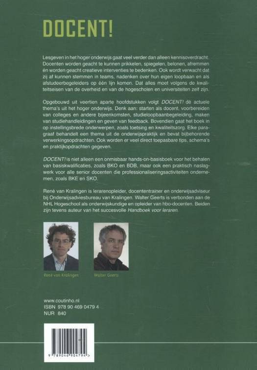 DOCENT! is niet alleen een onmisbaar hands-on basisboek voor het behalen van basiskwalificaties als BKO en BDB, maar ook een praktisch naslagwerk voor alle senior docenten die professionaliseringsactiviteiten ondernemen zoals BKE en SKO.