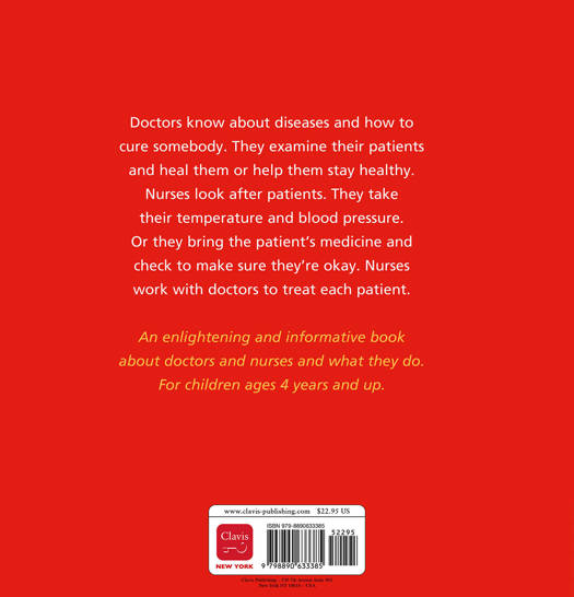 An enlightening and informative book about doctors and nurses and what they do. For children ages 4 years and up. Doctors know about diseases and how to cure somebody. They examine their patients and heal them or help them stay healthy. Nurses look after patients. They take their temperature and blood pressure. Or they bring the patient's medicine and check to make sure they're okay. Nurses work with doctors to treat each patient.