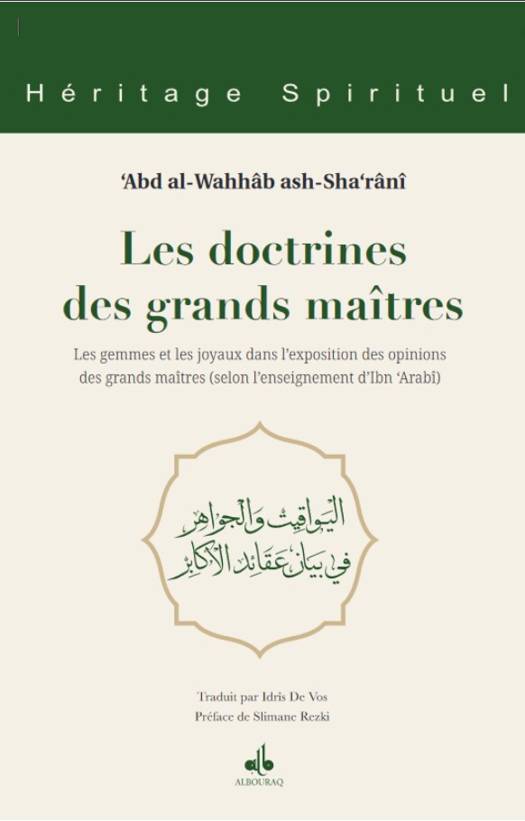Abd al Wahhâb ash Sha'rânî est un grand métaphysicien musulman. Né au Caire en 1493 (899 H.), Sha'rânî fut le témoin de l'apogée ottomane. Auteur prolixe, il écrivit de nombreux livres touchant tant à l'exotérisme qu'à l'ésotérisme. Il fut surtout un maître spirituel et vivificateur des sciences de son époque. Il mourut en 1565 (973 H), et fut inhumé au Caire. Idrîs de Vos est enseignant d'arabe et de tafsîr (commentaire du Coran). Issu d'une famille convertie à l'islam, diplômé en Sorbonne, il est plongé dans l'univers de la spiritualité musulmane et de la philosophie depuis sa plus tendre enfance. Spécialiste du soufisme et auteur prolixe, il a publié plus d'une trentaine d'études ou de traductions traitant aussi bien de la mystique que de la théologie. Dans son dernier ouvrage, « L'amour universelle, un cheminement soufi »