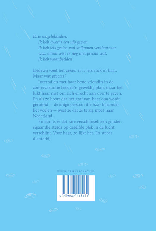 Liedewij – Lied – weet niet wat er aan de hand is. Behalve dat het lijkt alsof ze verdwijnt – geen echt contact meer heeft met de mensen om zich heen. Het leek zo’n geweldig plan, samen met Maya op interrail naar Zuid-Europa. Maar het lukt niet om zich er echt aan over te geven. En als ze hoort dat het graf van haar Opa Sigaar wordt geruimd, de enige persoon die haar bijzonder liet voelen, weet ze dat ze terug moet naar Nederland.