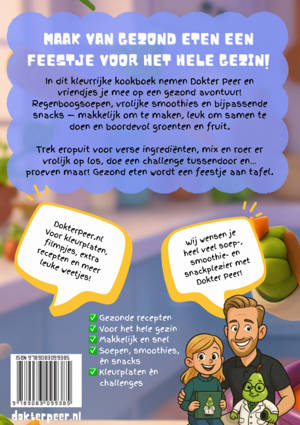 ✅ Gezonde recepten voor het hele gezin ✅ Makkelijk, betaalbaar en snel klaar ✅ Soepen, smoothies én snacks ✅ Inclusief kleurplaten en leuke challenges ✅ Extra recepten, filmpjes en kleurplaten via www.dokterpeer.nl