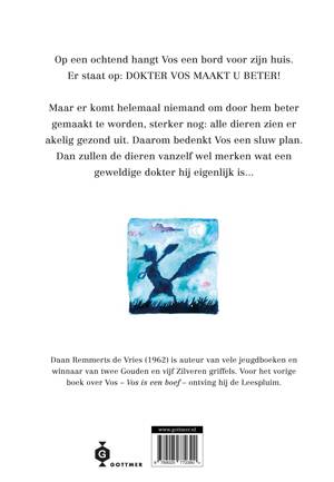 Wat voert Vos nu weer in zijn schild..? Op een ochtend hangt Vos een bord voor zijn huis. Er staat op: DOKTER VOS MAAKT U BETER! Dan gaat Vos zitten wachten. Zo nu en dan luistert hij even met zo'n ding, dat hij daarvoor speciaal aangeschaft heeft, naar zijn eigen hart. Dat klopt zo langzaam dat hij er somber van wordt. En er komt ook helemaal niemand om door hem beter gemaakt te worden, sterker nog: alle dieren zien er akelig gezond uit. Dus bedenkt Vos een sluw plan. Een plan dat echter anders uitpakt dan verwacht...