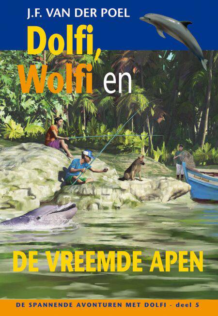 Deel vijf van de serie 'De spannende avonturen met Dolfi', van J.F. van der Poel, is 'Dolfi, Wolfi en de vreemde apen'. Mirja en Andy varen in het oerwoud, als plotseling hun vissersbootje omslaat… Mirja en Andy gaan samen met Wil paling vissen op een snelstromende rivier. Er doen verhalen de ronde over het oerwoud waar de rivier doorheen stroomt. Er zouden apen wonen die op mensen lijken. En jaren geleden is er een jongetje ontvoerd door deze aapmensen. In een zware storm slaat het vissersbootje van Wil kapot tegen de rotsen. Dolfi redt de kinderen uit de snelstomende rivier, maar ze raken Wil kwijt. Samen met Wolfi volgen ze zijn spoor door het oerwoud. Nu worden ze toch wel bang. Als het verhaal over die apen eens waar is? J.F. van der Poel kan spannend vertellen. Hij heeft al een groot aantal kinderboeken en romans geschreven. Voor zijn gehele oeuvre werd de schrijver in 2013 benoemd tot Ridder in de Orde van Oranje Nassau. 'Dolfi en de dolfijnjagers' is het tweede deel in de populaire serie 'De spannende avonturen met Dolfi'. Lees ze allemaal.