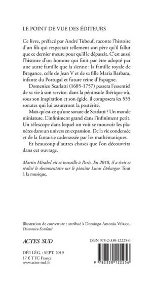 Domenico Scarlatti, claveciniste, vit dans l'ombre de son père Alessandro, musicien renommé. Compositeur d'opéras, musicien de cour, il entre au service de la fille du roi Jean V de Portugal. L'ouvrage montre en quoi une sonate de D. Scarlatti (1685-1757) est un monde miniature, de la vie condensée et de la fantaisie maîtrisée par les mathématiques.