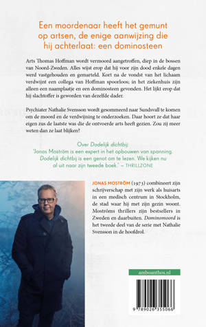 Dominomoord van Jonas Moström is het tweede deel in de serie rondom Nathalie Svensson. Voor de lezers van Camilla Läckberg. In dit deel gaat het om een moord en een verdwenen arts. Lukt het psychiater Nathalie Svensson om hem te vinden?