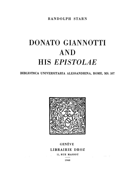 7. Donato Giannotti and his «Epistolæ» : Biblioteca Universitaria Alessandrina, Rome, Ms. 107