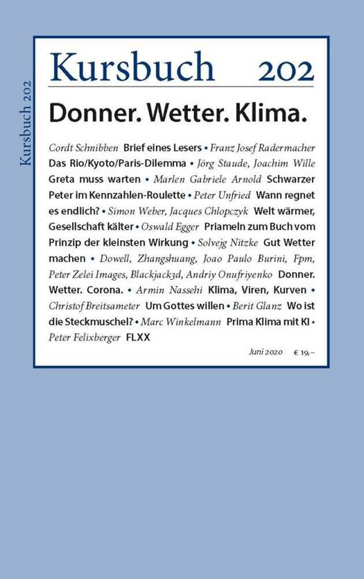Empörte Aktivisten im Hambacher Forst, wütende SchülerInnen bei den Fridays for Future-Protesten, hitzige Debatten im Bundestag und doch nur ein Schmalspurprogramm zum Klimaschutz, Plastik in den Weltmeeren, Mikroplastik im Trinkwasser, Gletscherschmelze, Tiersterben, Flygskam! Natur- und Klimaschutz sind zum beherrschenden Thema einer übererregten Öffentlichkeit geworden - bis der globale Shutdown die Aufmerksamkeitsökonomie auf andere, viralere Themen lenkte. Bevor aber die Autos auf unseren Auto- und die Flugzeuge auf den Startbahnen die globale Wirtschaft wieder anrollen lassen und der Klimaschutz damit an einem Scheidepunkt steht, nutzen wir die Zeit, und sezieren das Klima der Debattenlage: Wer redet wie, was, wann und wo mit wem? Eisige Winde der Negation, Jetstreams der Erzürnung, Monsunregen der Kritik, Orkane des blinden Aktivismus - kann die Gesellschaft der existentiellen Bedrohung durch die Klimakrise auf diese Weise noch Herr werden? Wir schalten noch einmal zum Klima und durchleuchten, warum uns der Tanz der Perspektiven so durcheinanderwirbelt.Mit Beiträgen von Marlen Gabriele Arnold, Franz Josef Radermacher, Joachim Wille, Jörg Staude, Solvejg Nitzke, Berit Glanz u.v.m.