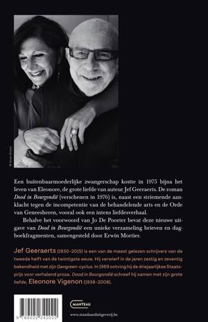 Dood in Bourgondië vertelt een aangrijpend autobiografisch verhaal. Eleonore, de geliefde van Jef Geeraerts, krijgt na een periode van een ernstige ziekte te kampen met hevige bloedingen. Een gynaecoloog houdt de gevaarlijke buitenbaarmoederlijke zwangerschap voor een miskraam. Vijftig dagen later verkeert Eleonore door deze verkeerde diagnose in permanent levensgevaar. Met nauwelijks ingehouden woede wordt de incompetentie van de geneesheer aan de kaak gesteld. Maar dat is slechts het uitgangspunt voor een verhaal over angstgevoelens, hedonisme en onvoorwaardelijke liefde.