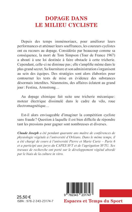 Depuis des temps immémoriaux, pour améliorer leurs performances et atténuer leurs souffrances, les coureurs cyclistes ont eu recours au dopage. Considérée par beaucoup comme sa conséquence, la mort de Tom Simpson (Tour de France 1967) a abouti à une loi destinée à faire obstacle à cette tricherie. Cependant, celle-ci ne diminue pas; elle s'amplifie même dans le plus grand secret. Sa fourniture et son administration s'organisent au sein des équipes. Des stratégies sont alors élaborées pour contourner les tests de mise en évidence des substances désormais interdites. Néanmoins, des affaires éclatent au grand jour: Festina, Armstrong...