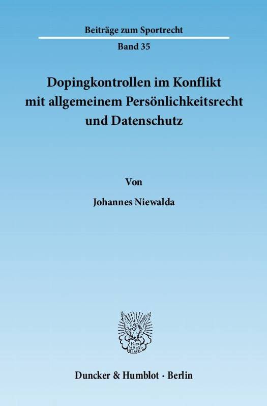Johannes Niewalda widmet sich der Frage nach der Vereinbarkeit der gängigen Dopingkontrollbestimmungen des NADA-Codes 2008 mit dem allgemeinen Persönlichkeitsrecht und den Rechtsgrundlagen des Datenschutzes. Der Verfasser zeigt auf, dass sowohl das allgemeine Persönlichkeitsrecht als auch das BDSG von den Sportvereinigungen wie auch von den Sponsoren bei der Durchführung von Dopingkontrollen und beim Umgang mit deren Ergebnissen zu beachten sind. Er kommt zu dem Ergebnis, dass die damit verbundenen Eingriffe in das allgemeine Persönlichkeitsrecht und die Verwendung personenbezogener Daten nicht zur Unzulässigkeit der Dopingkontrollmaßnahmen führen, sofern diese auf einen verhältnismäßigen Umfang begrenzt bleiben. Gleichzeitig werden einzelne Bestimmungen des NADA-Codes aufgezeigt, die das allgemeine Persönlichkeitsrecht der Sportler unzulässig beeinträchtigen oder zum geltenden Datenschutzrecht im Widerspruch stehen.