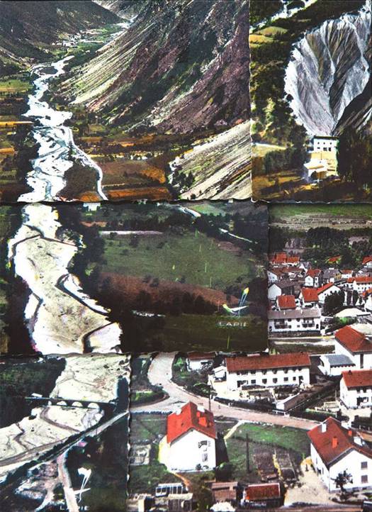 Reliées par leurs motifs, comme les pièces d'un grand puzzle cartographique, elles créent des continuités de paysages et des lignes d'horizon qui permettent un cheminement du regard à travers les régions de France. Une chaîne de montagnes improbable s'est constituée dans laquelle les sommets des Pyrénées cohabitent avec ceux des Alpes et du Massif Central. Le littoral s'est développé par des collages successifs d'images de bords de mer où les côtes Atlantique pouvaient voisiner avec celles de la Manche ou de la Méditerranée. Des ponts de différentes générations traversent la carte, tout comme les routes, voies ferrées ou fleuves.