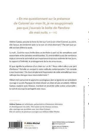 Mêlant récit personnel et approche sociologique, dans la lignée de son précédent ouvrage à succès Pourquoi j'ai choisi d'avoir un chien (et pas un enfant), Hélène Gateau explore avec finesse, mordant et sincérité cette scène universelle : la nuit et ceux qui la partagent avec nous.