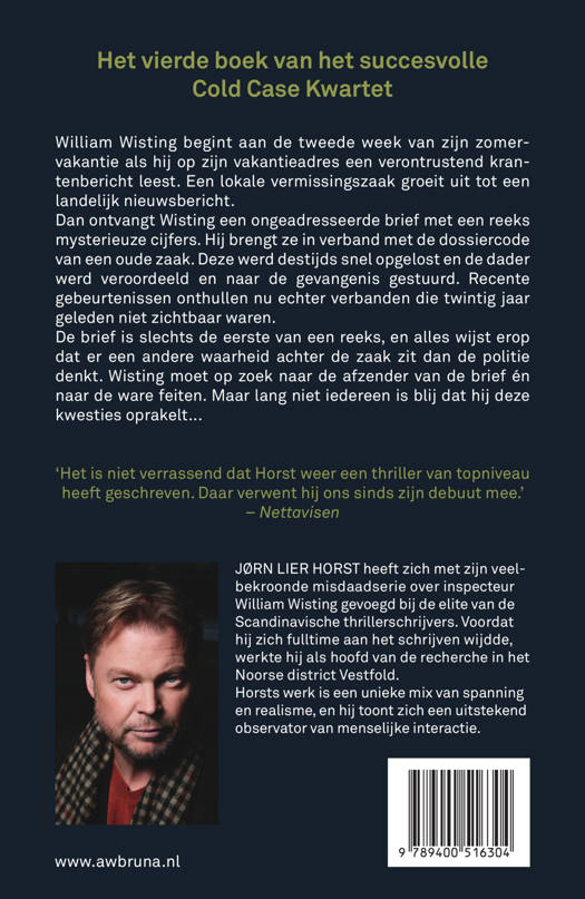 Dan ontvangt Wisting een ongeadresseerde brief met een reeks mysterieuze cijfers. Hij brengt ze in verband met de dossiercode van een oude zaak. Deze werd destijds snel opgelost en de dader werd veroordeeld en naar de gevangenis gestuurd. Recente gebeurtenissen onthullen nu echter verbanden die twintig jaar geleden niet zichtbaar waren.