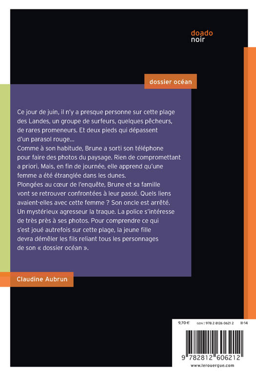 Après la mort de sa mère, Brune a été recueillie par sa tante et son mari, dans leur maison des Landes, au bord de l'Atlantique. Mutique et solitaire, elle passe son temps à photographier la plage et à la dessiner. L'assassinat d'une femme sur cette même plage la plonge au coeur d'une enquête policière et fait remonter le passé dissimulé de sa mère. Un polar pour ado d'une très belle atmosphère et subtilement noué. L'auteur rejoint le Rouergue après avoir notamment publié des policiers chez Syros et Baleine.