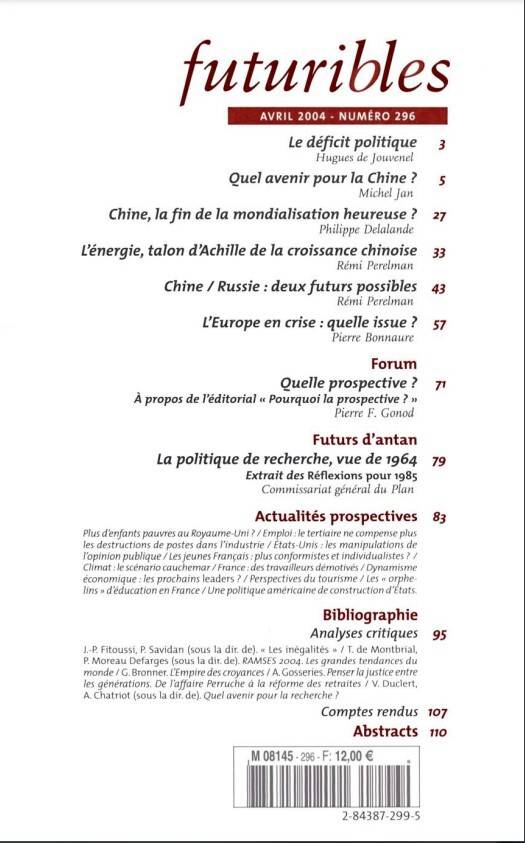 Quelle prospective ? À propos de l’éditorial « Pourquoi la Prospective ? »