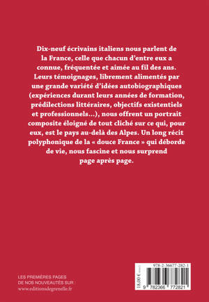 La relation des italiens avec la France a été (principalement) une relation d'amour, de fascination, parfois de méfiance. Il semble que ce n'est pas une certaine grandeur ostentatoire qui fait rêver ces cousins transalpins, mais c'est bien notre radicalité, notre esprit, l'élégance de notre style, notre passion pour la justice, notre foi presque fanatique en la raison, notre oscillation entre les extrêmes (le sombre nihilisme du marquis de Sade et le bonheur délicat des toiles des impressionnistes) qui les ont toujours attirés. Cet élan de sincérité désarmée a imprégné les écrivains italiens réunis dans ce volume - parmi les meilleurs de la littérature transalpine - qui ont répondu à l'invitation de s'exprimer sur la France : leurs textes, tantôt narratifs, tantôt proches de l'essai, tantôt réflexifs, tantôt lyriques et relevant du journal intime, se révèlent être comme autant de micro-romans initiatiques, directs et sans prétention. Nous ne saurons jamais lequel, du fromage français ou italien est le meilleur, mais peut-être que dorénavant chacun pourra se faire sa propre idée, sans chauvinisme ni préjugés culturels.