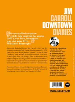 Auteur du best-seller mondial Basketball Diaries (adapté au cinéma avec Leonardo DiCaprio), Jim Carroll a été l'une des figures centrales du New York artistique des années 1970. Dans cette suite à son premier roman, cet ami d'Allen Ginsberg, Andy Warhol et Bob Dylan nous fait plonger dans le downtown new-yorkais des junkies, des paumés et des électrons libres. Un monde sans gravité où tous testent au quotidien les limites de leur corps, de leur vie et de leur santé mentale.