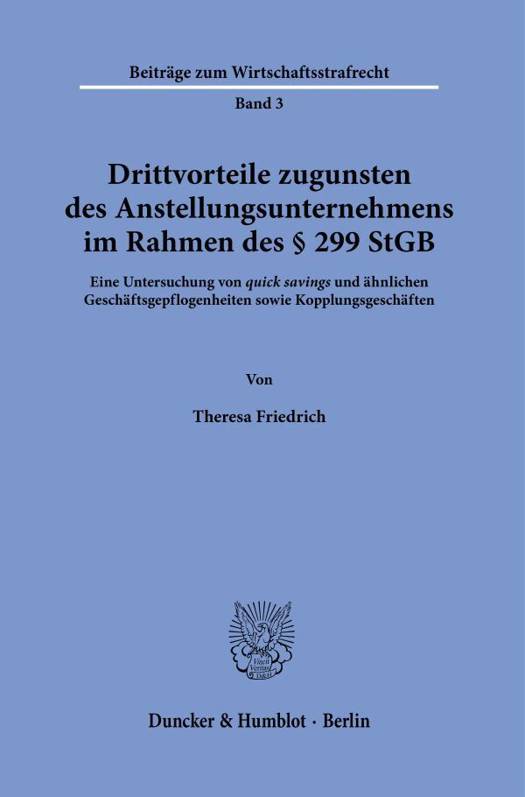 Angestellte handeln im Wirtschaftsalltag regelmaaig zugunsten ihres Anstellungsunternehmens. Aufgrund der Weite des Tatbestands des 299 StGB birgt jeder fur den Arbeitgeber ausgehandelte Vorteil fur den Angestellten die Gefahr einer Strafbarkeit wegen Bestechlichkeit im geschaftlichen Verkehr. Besondere Praxisrelevanz entwickelt dieses Problem bei sog. Quick Savings und Kopplungsgeschaften. Die vorliegende Arbeit analysiert den geschichtlichen Hintergrund sowie das Rechtsgut der Norm, setzt sich mit den in der Literatur bisher vorgebrachten Argumenten auseinander und stellt eine eigene Losung vor, um sowohl fur Unternehmen als auch die betroffenen Mitarbeiter Rechtssicherheit zu schaffen. Ein weiterer Schwerpunkt der Arbeit liegt in der Untersuchung der Strafbarkeit von Drittvorteilen in Konzernkonstellationen. Hierbei stellt die Arbeit der bisher in der Literatur vertretenen wirtschaftlichen Betrachtungsweise eine gesellschaftsrechtliche Auslegung gegenuber.