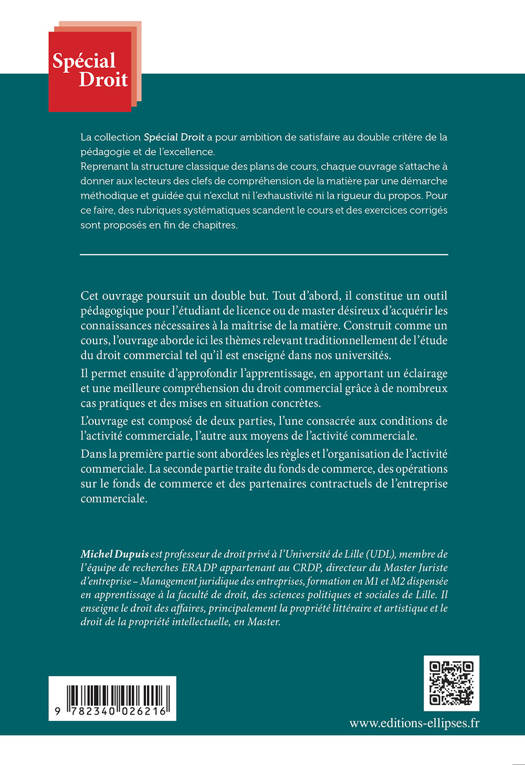 Il permet ensuite d’approfondir l’apprentissage, en apportant un éclairage et une meilleure compréhension du droit commercial grâce à de nombreux cas pratiques et des mises en situation concrètes.