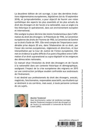 Ce manuel consacré au droit des étrangers et de l’accès à la nationalité française, reprise d’un cours magistral donné à l’université de Paris-Est, présente l’état du droit positif en intégrant les dernières réformes et la jurisprudence la plus récente.