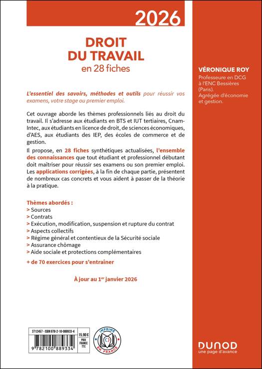 L’essentiel des savoirs, des méthodes et des outils, aussi bien pour la réussite de vos examens que de votre stage ou premier emploi.Cet ouvrage aborde les thèmes professionnels liés au droit du travail. Il s’adresse aux étudiants en BTS et IUT tertiaires, Cnam-Intec, aux étudiants en licence de droit, de sciences économiques, d’AES, aux étudiants des IEP, des écoles de commerce et de gestion.
