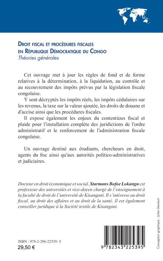 Cet ouvrage décrypte les impôts réels, les impôts cédulaires sur les revenus, les droits de douane et les procédures fiscales prévues par la législation fiscale congolaise. Il plaide également pour le renforcement de l’administration fiscale congolaise et l’installation de juridictions d’ordre administratif. Un ouvrage destiné à l’enseignement et aux autorités politico-administratives.