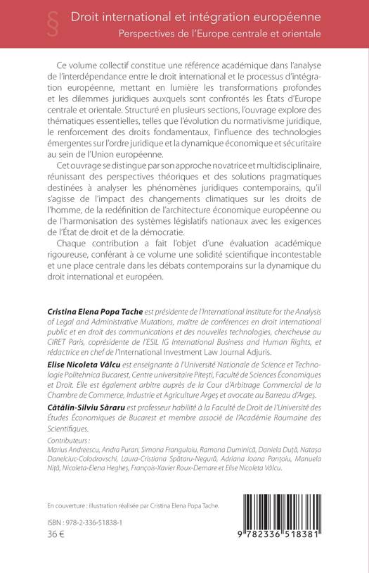 Ce volume collectif constitue une référence académique dans l'analyse de l'interdépendance entre le droit international et le processus d'intégration européenne, mettant en lumière les transformations profondes et les dilemmes juridiques auxquels sont confrontés les États d'Europe centrale et orientale. Structuré en plusieurs sections, l'ouvrage explore des thématiques essentielles, telles que l'évolution du normativisme juridique, le renforcement des droits fondamentaux, l'influence des technologies émergentes sur l'ordre juridique et la dynamique économique et sécuritaire au sein de l'Union européenne. Cet ouvrage se distingue par son approche novatrice et multidisciplinaire, réunissant des perspectives théoriques et des solutions pragmatiques destinées à analyser les phénomènes juridiques contemporains, qu'il s'agisse de l'impact des changements climatiques sur les droits de l'homme, de la redéfinition de l'architecture économique européenne ou de l'harmonisation des systèmes législatifs nationaux avec les exigences de l'État de droit et de la démocratie.