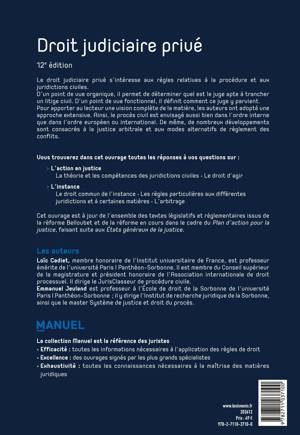 Partie 1 : L'action en justice Livre 1 : La juridiction Titre 1 : Théorie de la juridiction civile Titre 2 : Compétence des juridictions civiles Livre 2 : Le droit d'agir Titre 1 : Théorie de l'action Titre 2 : Régime de l'action Partie 2 : L'instance Livre 1 : Le droit commun de l'instance Titre 1 : Théorie de l'instance Titre 2 : Cours de l'instance Livre 2 : Le droit spécial de l'instance Titre 1 : Règles particulières à chaque juridiction étatique Titre 2 : Règles particulières à l'arbitrage