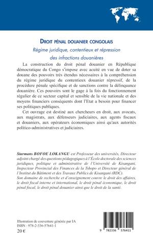 La construction du droit pénal douanier en République démocratique du Congo s'impose avec acuité en vue de doter sa douane des pouvoirs très étendus nécessaires à la compréhension du régime juridique du contentieux douanier répressif, de la procédure pénale spécifique et de sanctions contre la délinquance douanière. Ces pouvoirs sont le gage à la fois du fonctionnement régulier de ce secteur capital et sensible de la vie nationale et des moyens financiers conséquents dont l'Etat a besoin pour financer ses politiques publiques. Cet ouvrage est destiné aux chercheurs en droit, aux avocats, aux magistrats, aux défenseurs judiciaires, aux agents fiscaux et douaniers, aux opérateurs économiques ainsi qu'aux autorités politico-administratives et judiciaires.