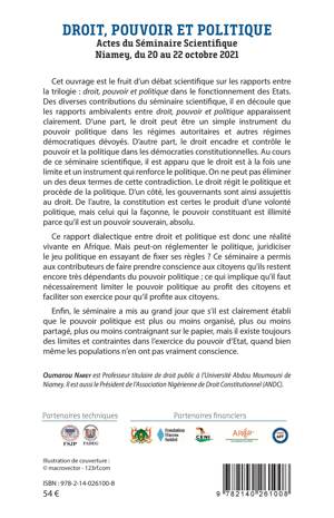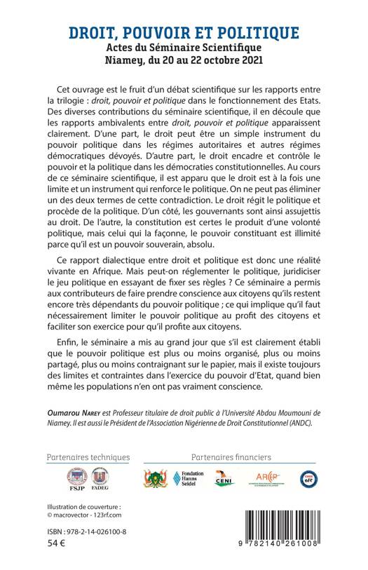 D'une part, le droit peut être un simple instrument du pouvoir politique dans les régimes autoritaires et autres régimes démocratiques dévoyés. D'autre part, le droit encadre et contrôle le pouvoir et la politique dans les démocraties constitutionnelles. Au cours de ce séminaire scientifique, il est apparu que le droit est à la fois une limite et un instrument qui renforce le politique. Ce rapport dialectique entre droit et politique est donc une réalité vivante en Afrique. Mais peut-on réglementer le politique, juridiciser le jeu politique en essayant de fixer ses règles ?