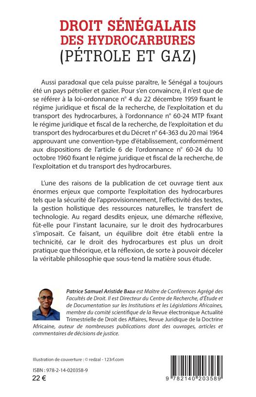 Aussi paradoxal que cela puisse paraître, le Sénégal a toujours été un pays pétrolier et gazier. L’une des raisons de la publication de cet ouvrage tient aux énormes enjeux que comporte l’exploitation des hydrocarbures tels que la sécurité de l’approvisionnement, l’effectivité des textes, la gestion holistique des ressources naturelles, le transfert de technologie. Au regard desdits enjeux, une démarche réflexive, fût-elle pour l’instant lacunaire, sur le droit des hydrocarbures s’imposait. Ce faisant, un équilibre doit être établi entre la technicité, car le droit des hydrocarbures est plus un droit pratique que théorique, et la réflexion, de sorte à pouvoir déceler la véritable philosophie que sous-tend la matière sous étude.