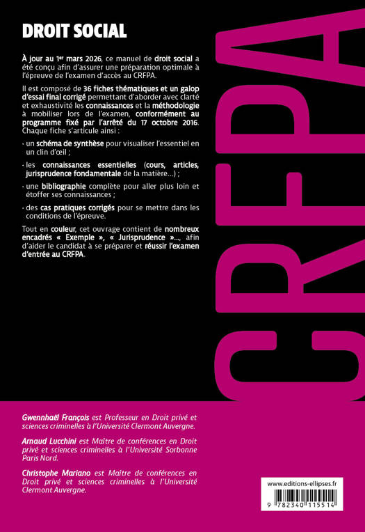 Le Droit social a été conçue afin d'assurer une préparation optimale à l'épreuve de l’examen d'accès au CRFPA.