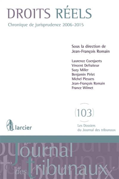 Les auteurs ont rédigé cette chronique de jurisprudence dans la matière des droits réels, couvrant la période s’écoulant de 2006 à 2015 y compris, soit 10 ans de jurisprudence. Cette période a été d’un grand intérêt pour les droits réels et les biens, voyant se développer de façon très substantielle certains domaines, comme celui de la copropriété des immeubles bâtis par exemple.