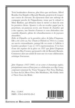 Drôles de Fripouilles est la première pièce de John Chapman. Elle a été créée au New Theatre à Oxford en 1954 et a connu un succès extraordinaire, puisqu’elle est restée à l’affiche à Londres pendant 4 ans et 1475 représentations. C’est lors d’une des reprises de la pièce en 1957 que John Chapman rencontre Ray Cooney, qui jouait le rôle de Barnabé Baratin. Commence alors une amitié de toute une vie et une collaboration artistique fructueuse.