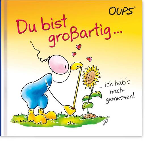 Du bist großartig - ich hab´s nachgemessenDie liebenswerten Komplimente von Oups machen dieses Büchlein zu einem wundervollen Geschenk, mit dem man Groß und Klein viel Freude machen kann.Natürlich mit vielen bunten, fröhlichen Bildern.© werteArt Verlag,Illustration Posting: Johannes BöttingerTexte: Kurt HörtenhuberUrheberin Figur Oups: Conny Wolf